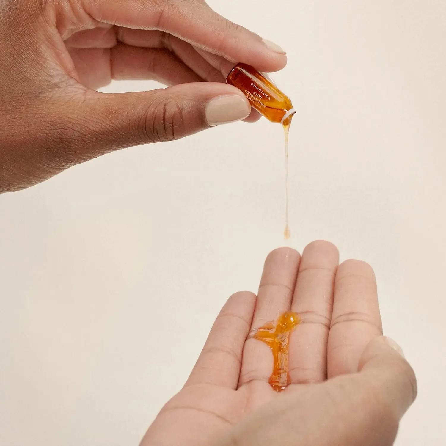 Нанесите около 10–15 капель сыворотки (или 1 ампулу) вдоль проборов — равномерно по всей поверхности кожи головы.